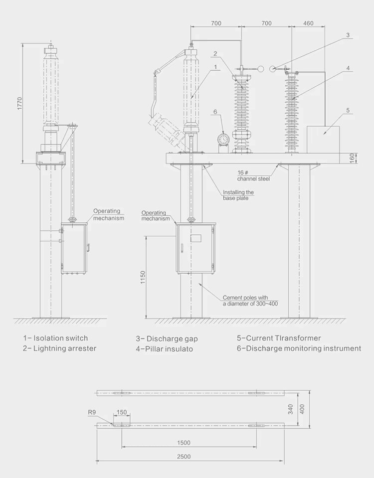 Lugaos GW13-serie transformer-neutralpunkt-overspændingsbeskyttere bruges primært i nulpunktskredsløbene på 110kV og 220kV-strømtransformatorer. De beskytter transformerens nulpunktsisolering mod overspændingsskader og gør det muligt for transformeren at skifte mellem jordet og ikke-jordet nulpunktsdriftstilstand. Når samtidig beskyttelse mod lynnedslag, strømfrekvens og skiftende overspændinger er påkrævet, kan en spalte og afleder tilsluttes parallelt for beskyttelse. GW13-seriens neutralpunktsoverspændingsbeskytter er et komplet sæt, der integrerer en afbryder, zinkoxidafleder, udladningsgab og strømtransformer. Den har høj termisk kapacitet og fremragende beskyttelse, fleksible konfigurationer og brugervenlighed. Et rent spaltedesign eller en kombination af afbryder og udledningsgab kan vælges for at imødekomme brugernes behov.